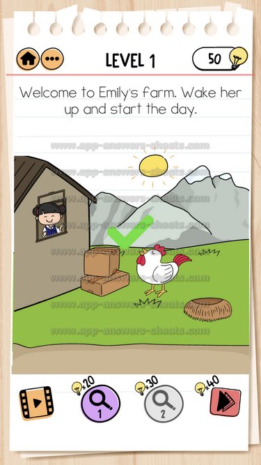 Here you can find a complete walkthrough for Brain Test 2 Emily’s Farm, this new version created by Unico Studio is available for Android, iPhone and iPad devices. In this new versions there are different stories and you have puzzle to solve each level. The chapters have a minimum of 20 levels and some of them are pretty hard. That’s why we will help you to solve a specific level. Good luck and have fun.