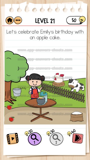 Here you can find a complete walkthrough for Brain Test 2 Emily’s Farm, this new version created by Unico Studio is available for Android, iPhone and iPad devices. In this new versions there are different stories and you have puzzle to solve each level. The chapters have a minimum of 20 levels and some of them are pretty hard. That’s why we will help you to solve a specific level. Good luck and have fun.