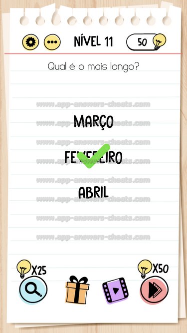Brain Test Nível 11 : Fevereiro tem mais Letras