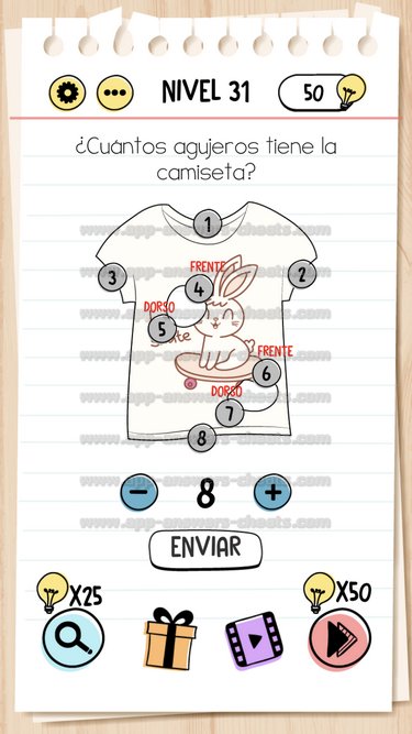Aquí encontrará respuestas y soluciones de Brain Test Nivel 31-40. Este juego fue creado por Unico Studio y está disponible para dispositivos Android e iOS. ¿Estás atrapado y necesitas ayuda? Encuentra las respuestas a continuación. Diviértete.