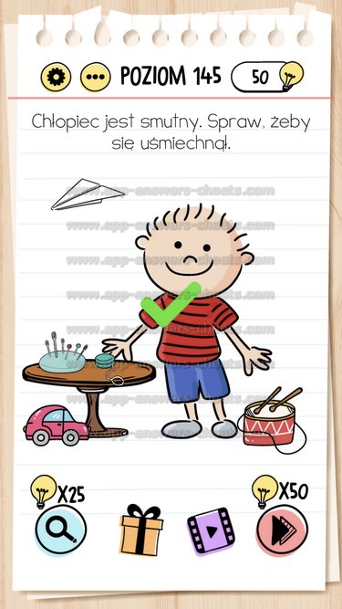Brain Test Poziom 145 : Użyj palców i zmień usta ze smutnego na uśmiech :-).
