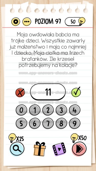 Powrót do pełnego przeglądu poziomów? Kliknij tutaj. Lub kontynuuj Brain Test Poziom 101-110