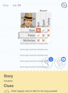 Cross Logic Easy Level 55 Answer, Cheat and Solution is online, so are you stuck and looking for help here you can find a complete guide. This game is just new and it’s created by Gismart and it’s compatible with Android & iOS devices. Goal to solve all logic puzzles, some levels are a little bit harder that’s why we give you support. Have fun and hopefully when can help you further. Bye.