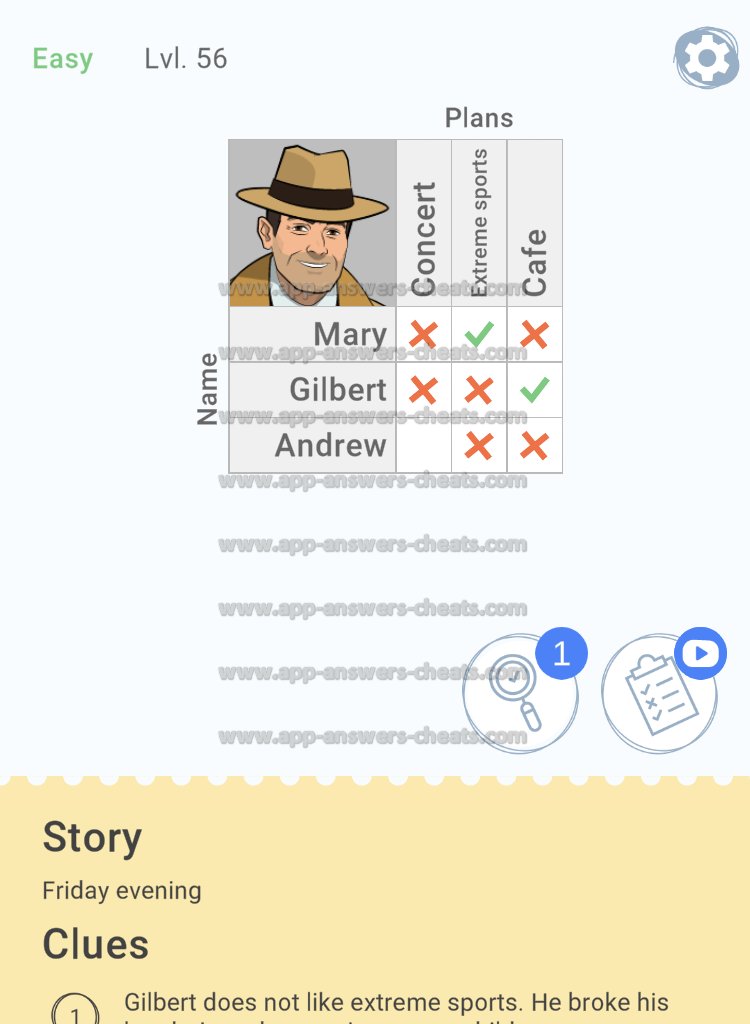 Cross Logic Easy Level 56 Answer, Cheat and Solution is online, so are you stuck and looking for help here you can find a complete guide. This game is just new and it’s created by Gismart and it’s compatible with Android & iOS devices. Goal to solve all logic puzzles, some levels are a little bit harder that’s why we give you support. Have fun and hopefully when can help you further. Bye.