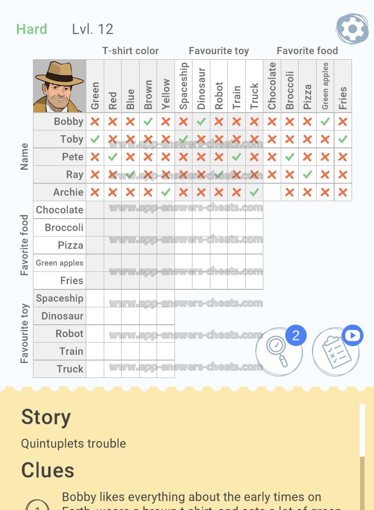 Cross Logic Hard Level 12 Answer, Cheat and Solution is online, so are you stuck and looking for help here you can find a complete guide. This game is just new and it’s created by Gismart and it’s compatible with Android & iOS devices. Goal to solve all logic puzzles, some levels are a little bit harder that’s why we give you support. Have fun and hopefully when can help you further. Bye.