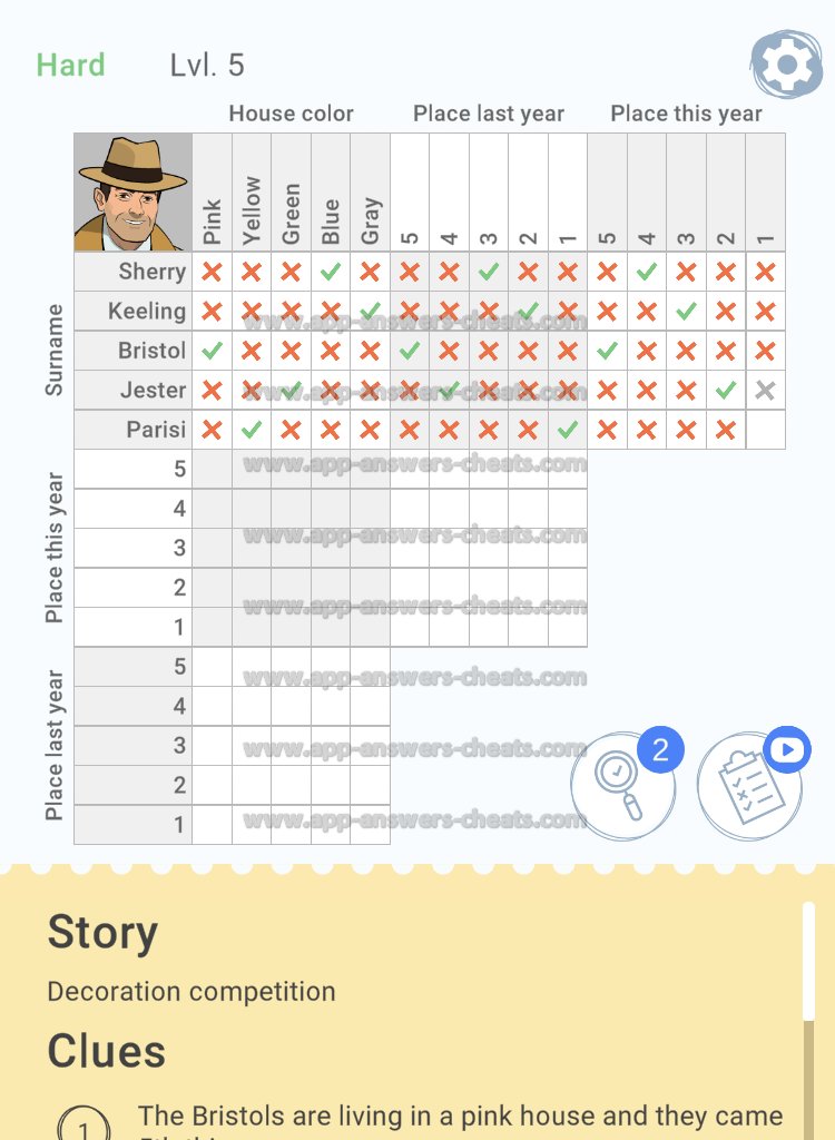 Cross Logic Hard Level 5 Answer, Cheat and Solution is online, so are you stuck and looking for help here you can find a complete guide. This game is just new and it’s created by Gismart and it’s compatible with Android & iOS devices. Goal to solve all logic puzzles, some levels are a little bit harder that’s why we give you support. Have fun and hopefully when can help you further. Bye.