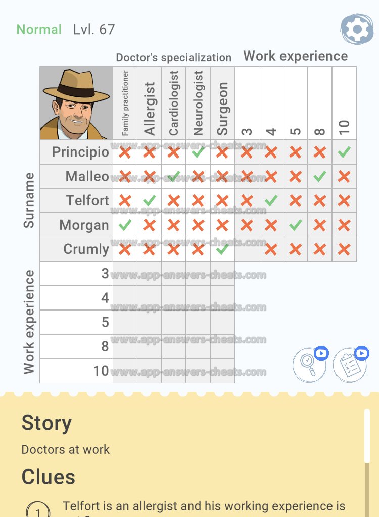 Cross Logic Normal Level 67 Answer, Cheat and Solution is online, so are you stuck and looking for help here you can find a complete guide. This game is just new and it’s created by Gismart and it’s compatible with Android & iOS devices. Goal to solve all logic puzzles, some levels are a little bit harder that’s why we give you support. Have fun and hopefully when can help you further. Bye.