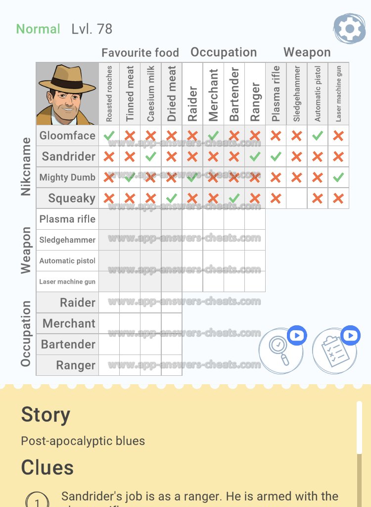 Cross Logic Normal Level 78 Answer, Cheat and Solution is online, so are you stuck and looking for help here you can find a complete guide. This game is just new and it’s created by Gismart and it’s compatible with Android & iOS devices. Goal to solve all logic puzzles, some levels are a little bit harder that’s why we give you support. Have fun and hopefully when can help you further. Bye.