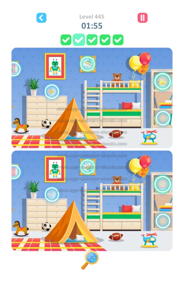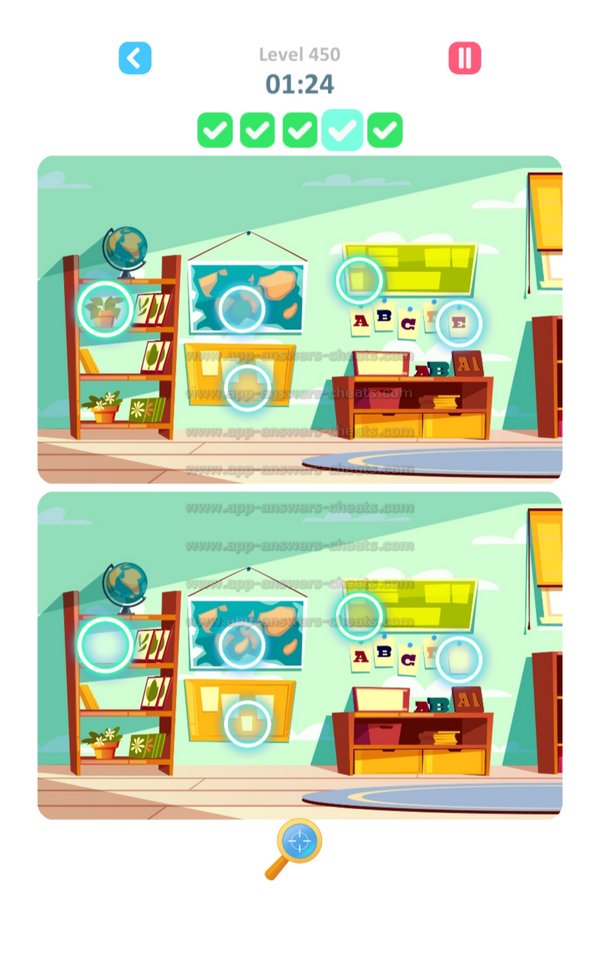 Here you can find all Answers and Solutions TapTap Differences Level 426-450. TapTap Differences is a wonderful find and seek game created by Rightway Games and available for Android, iPhone & iPad devices. Goal is to search items, figures and also hidden objects. Each level has 5 clues to solve and some of them a really hard that’s why will assist you when you’re stuck. It’s some kind of cheat but I think it’s worser when you can’t play next level because you can’t solve a specific level. Have fun and hopefully we will see you again.