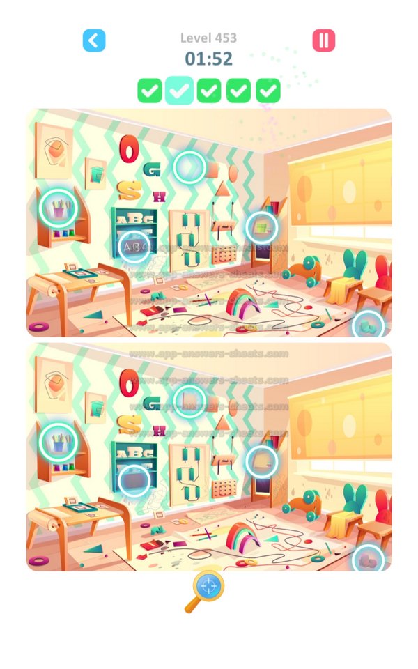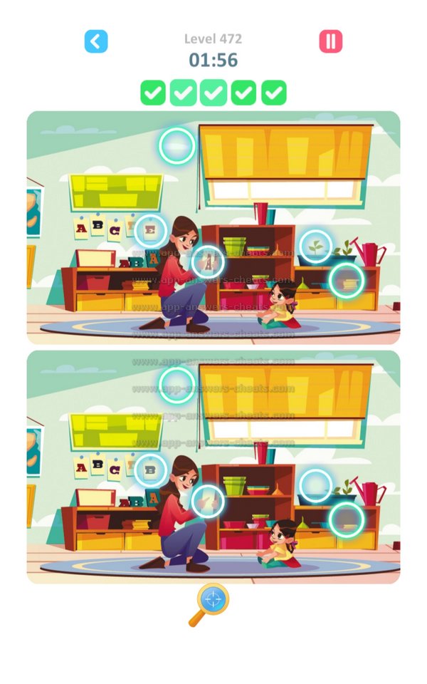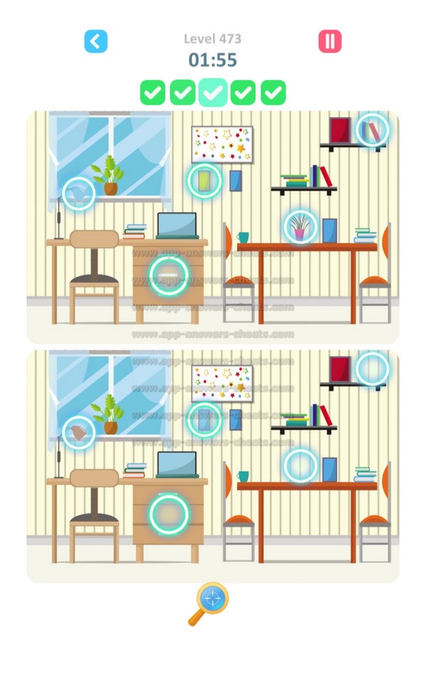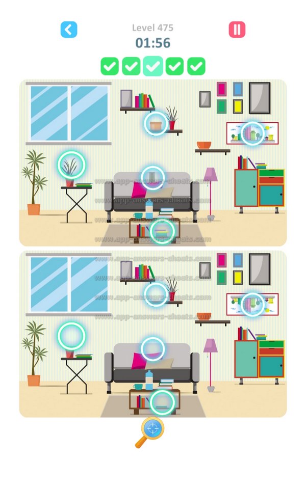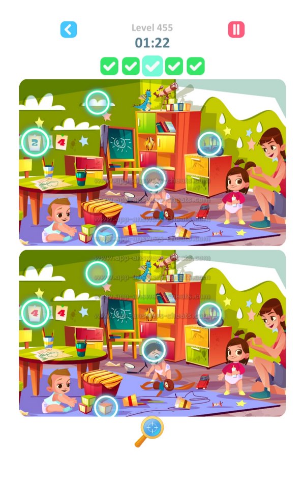 Here you can find all Answers and Solutions TapTap Differences Level 451-475. TapTap Differences is a wonderful find and seek game created by Rightway Games and available for Android, iPhone & iPad devices. Goal is to search items, figures and also hidden objects. Each level has 5 clues to solve and some of them a really hard that’s why will assist you when you’re stuck. It’s some kind of cheat but I think it’s worser when you can’t play next level because you can’t solve a specific level. Have fun and hopefully we will see you again.