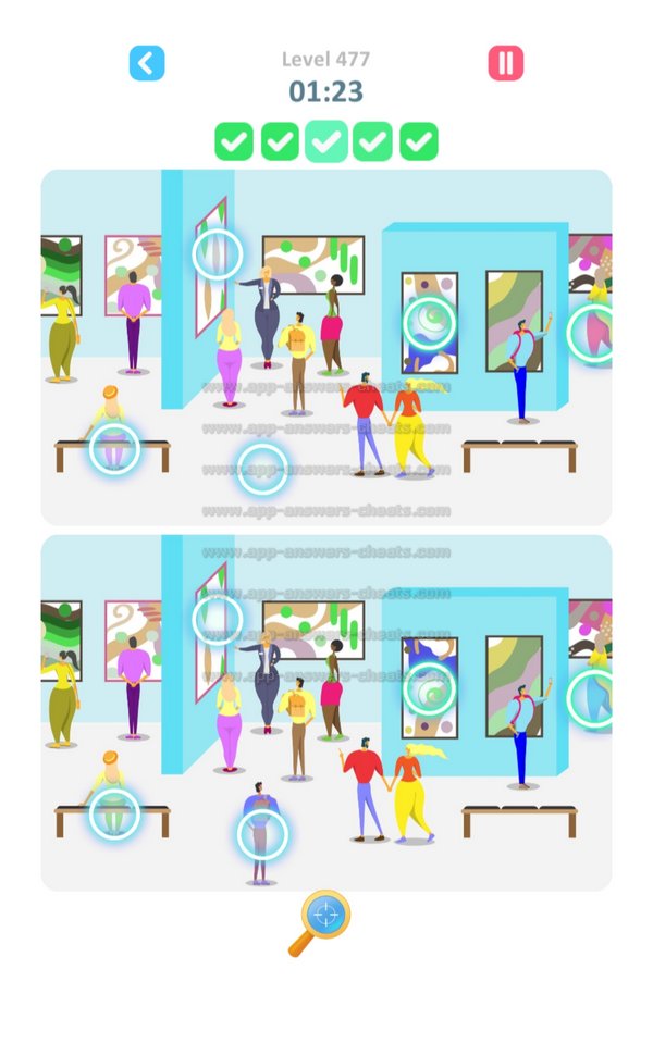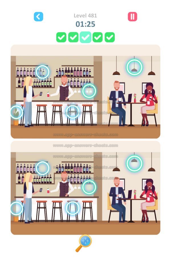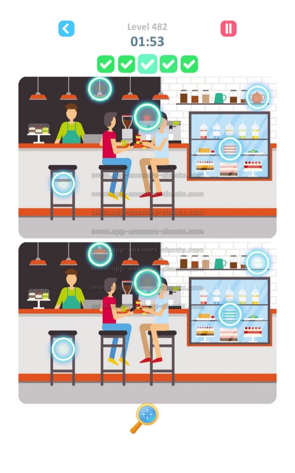 Here you can find all Answers and Solutions TapTap Differences Level 476-500. TapTap Differences is a wonderful find and seek game created by Rightway Games and available for Android, iPhone & iPad devices. Goal is to search items, figures and also hidden objects. Each level has 5 clues to solve and some of them a really hard that’s why will assist you when you’re stuck. It’s some kind of cheat but I think it’s worser when you can’t play next level because you can’t solve a specific level. Have fun and hopefully we will see you again.