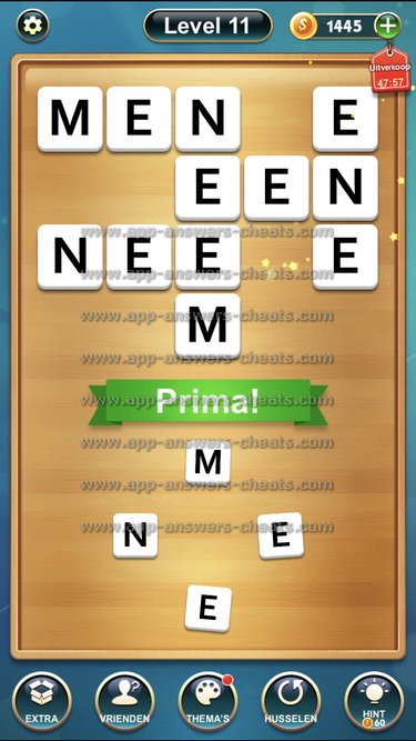 | Woord Kruis Level 197 : Een – Ene – Men – Menen – Nee – Neem – Neen – Nemen |