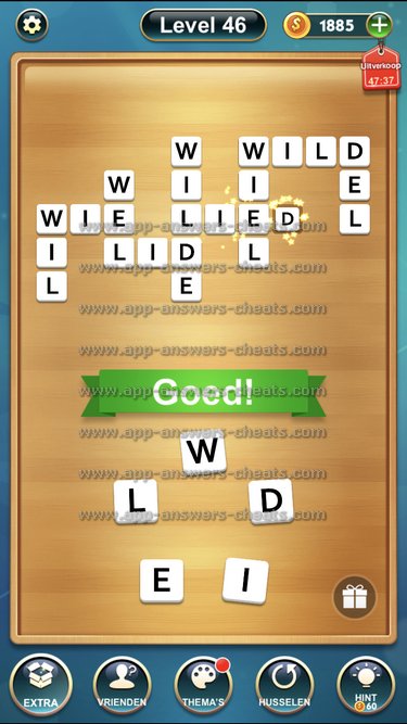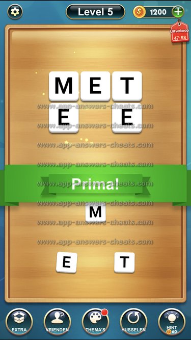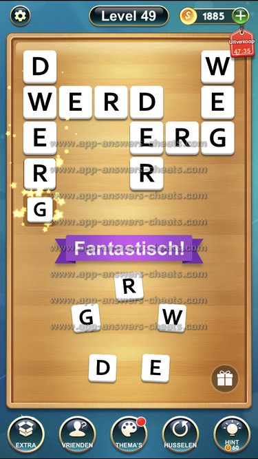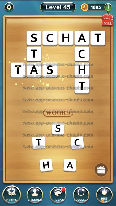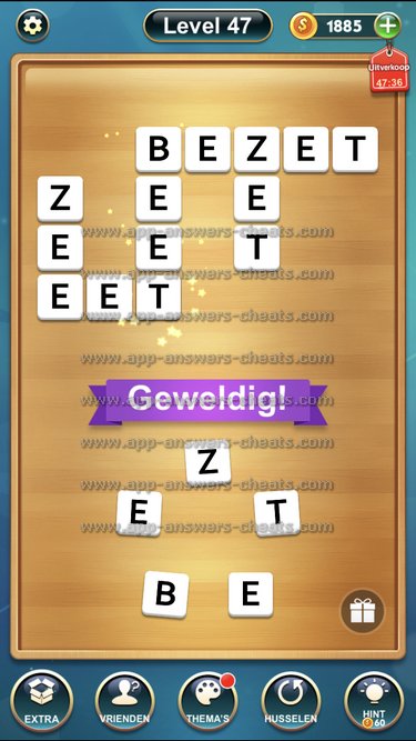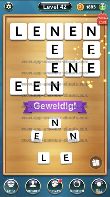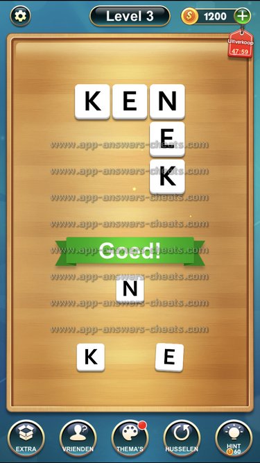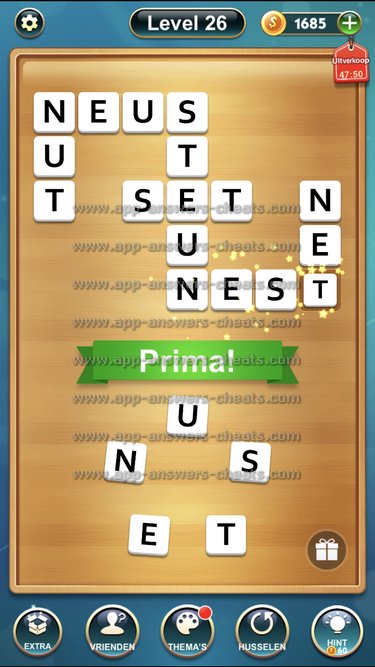 | Woord Kruis Level 57 : Nest – Net – Set – Wens – Wenst – West – Wet |