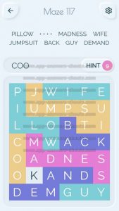 Word Maze Level 117 Answer, Cheat and Solution is online and available for this superb new word game created by Second Gear Games and compatible with Android, iPhone & iPad devices. You have to search all words with sliding over your screen. It’s a lovely game but sometimes you get stuck, that’s why we offer you help to solve all levels. Good luck and have fun. Thanks for your visit.