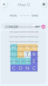 Word Maze Level 12 Answer, Cheat and Solution is online and available for this superb new word game created by Second Gear Games and compatible with Android, iPhone & iPad devices. You have to search all words with sliding over your screen. It’s a lovely game but sometimes you get stuck, that’s why we offer you help to solve all levels. Good luck and have fun. Thanks for your visit.