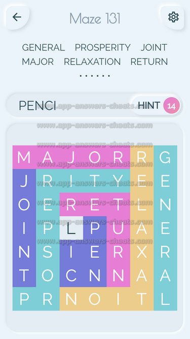 Word Maze Level 131 Answer, Cheat and Solution is online and available for this superb new word game created by Second Gear Games and compatible with Android, iPhone & iPad devices. You have to search all words with sliding over your screen. It’s a lovely game but sometimes you get stuck, that’s why we offer you help to solve all levels. Good luck and have fun. Thanks for your visit.