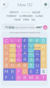 Word Maze Level 132 Answer, Cheat and Solution is online and available for this superb new word game created by Second Gear Games and compatible with Android, iPhone & iPad devices. You have to search all words with sliding over your screen. It’s a lovely game but sometimes you get stuck, that’s why we offer you help to solve all levels. Good luck and have fun. Thanks for your visit.
