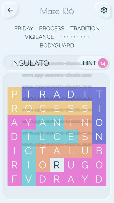 Word Maze Level 136 Answer, Cheat and Solution is online and available for this superb new word game created by Second Gear Games and compatible with Android, iPhone & iPad devices. You have to search all words with sliding over your screen. It’s a lovely game but sometimes you get stuck, that’s why we offer you help to solve all levels. Good luck and have fun. Thanks for your visit.