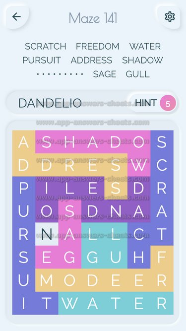 Word Maze Level 141 Answer, Cheat and Solution is online and available for this superb new word game created by Second Gear Games and compatible with Android, iPhone & iPad devices. You have to search all words with sliding over your screen. It’s a lovely game but sometimes you get stuck, that’s why we offer you help to solve all levels. Good luck and have fun. Thanks for your visit.
