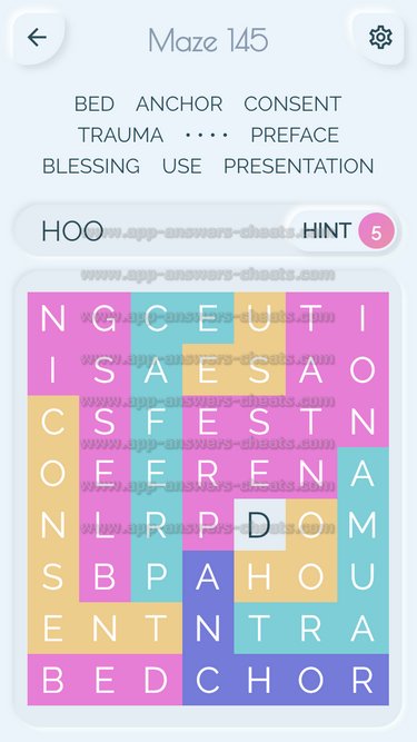 Word Maze Level 145 Answer, Cheat and Solution is online and available for this superb new word game created by Second Gear Games and compatible with Android, iPhone & iPad devices. You have to search all words with sliding over your screen. It’s a lovely game but sometimes you get stuck, that’s why we offer you help to solve all levels. Good luck and have fun. Thanks for your visit.