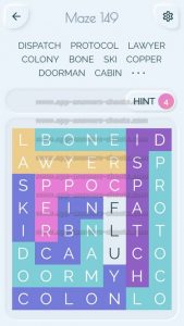 Word Maze Level 149 Answer, Cheat and Solution is online and available for this superb new word game created by Second Gear Games and compatible with Android, iPhone & iPad devices. You have to search all words with sliding over your screen. It’s a lovely game but sometimes you get stuck, that’s why we offer you help to solve all levels. Good luck and have fun. Thanks for your visit.
