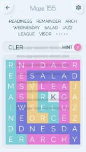 Word Maze Level 155 Answer, Cheat and Solution is online and available for this superb new word game created by Second Gear Games and compatible with Android, iPhone & iPad devices. You have to search all words with sliding over your screen. It’s a lovely game but sometimes you get stuck, that’s why we offer you help to solve all levels. Good luck and have fun. Thanks for your visit.
