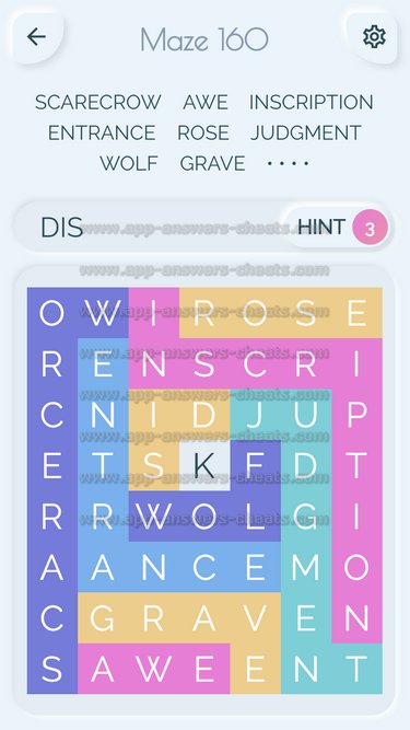 Word Maze Level 160 Answer, Cheat and Solution is online and available for this superb new word game created by Second Gear Games and compatible with Android, iPhone & iPad devices. You have to search all words with sliding over your screen. It’s a lovely game but sometimes you get stuck, that’s why we offer you help to solve all levels. Good luck and have fun. Thanks for your visit.