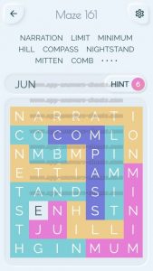 Word Maze Level 161 Answer, Cheat and Solution is online and available for this superb new word game created by Second Gear Games and compatible with Android, iPhone & iPad devices. You have to search all words with sliding over your screen. It’s a lovely game but sometimes you get stuck, that’s why we offer you help to solve all levels. Good luck and have fun. Thanks for your visit.