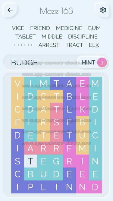 Word Maze Level 163 Answer, Cheat and Solution is online and available for this superb new word game created by Second Gear Games and compatible with Android, iPhone & iPad devices. You have to search all words with sliding over your screen. It’s a lovely game but sometimes you get stuck, that’s why we offer you help to solve all levels. Good luck and have fun. Thanks for your visit.