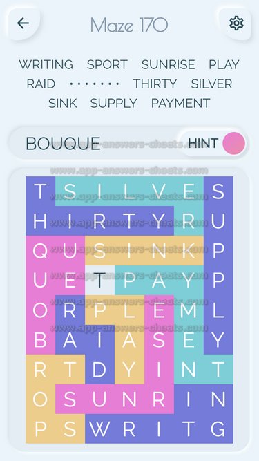 Word Maze Level 170 Answer, Cheat and Solution is online and available for this superb new word game created by Second Gear Games and compatible with Android, iPhone & iPad devices. You have to search all words with sliding over your screen. It’s a lovely game but sometimes you get stuck, that’s why we offer you help to solve all levels. Good luck and have fun. Thanks for your visit.
