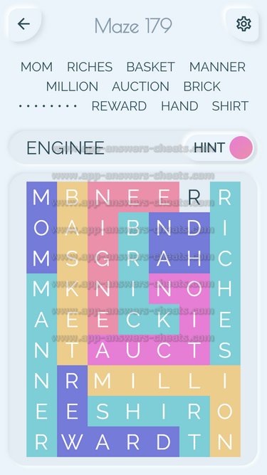 Word Maze Level 179 Answer, Cheat and Solution is online and available for this superb new word game created by Second Gear Games and compatible with Android, iPhone & iPad devices. You have to search all words with sliding over your screen. It’s a lovely game but sometimes you get stuck, that’s why we offer you help to solve all levels. Good luck and have fun. Thanks for your visit.