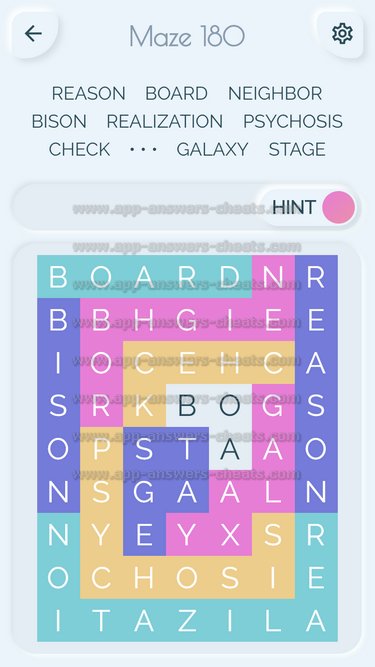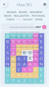 Word Maze Level 180 Answer, Cheat and Solution is online and available for this superb new word game created by Second Gear Games and compatible with Android, iPhone & iPad devices. You have to search all words with sliding over your screen. It’s a lovely game but sometimes you get stuck, that’s why we offer you help to solve all levels. Good luck and have fun. Thanks for your visit.