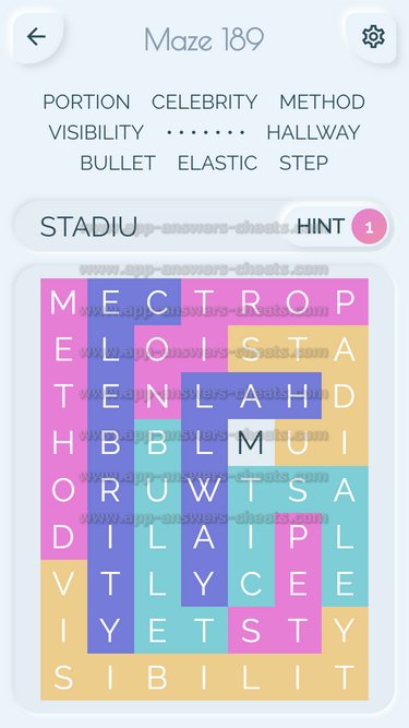 Word Maze Level 189 Answer, Cheat and Solution is online and available for this superb new word game created by Second Gear Games and compatible with Android, iPhone & iPad devices. You have to search all words with sliding over your screen. It’s a lovely game but sometimes you get stuck, that’s why we offer you help to solve all levels. Good luck and have fun. Thanks for your visit.