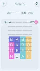 Word Maze Level 19 Answer, Cheat and Solution is online and available for this superb new word game created by Second Gear Games and compatible with Android, iPhone & iPad devices. You have to search all words with sliding over your screen. It’s a lovely game but sometimes you get stuck, that’s why we offer you help to solve all levels. Good luck and have fun. Thanks for your visit.