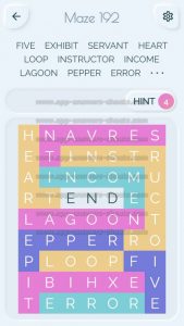 Word Maze Level 192 Answer, Cheat and Solution is online and available for this superb new word game created by Second Gear Games and compatible with Android, iPhone & iPad devices. You have to search all words with sliding over your screen. It’s a lovely game but sometimes you get stuck, that’s why we offer you help to solve all levels. Good luck and have fun. Thanks for your visit.
