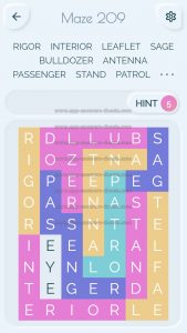 Word Maze Level 209 Answer, Cheat and Solution is online and available for this superb new word game created by Second Gear Games and compatible with Android, iPhone & iPad devices. You have to search all words with sliding over your screen. It’s a lovely game but sometimes you get stuck, that’s why we offer you help to solve all levels. Good luck and have fun. Thanks for your visit.