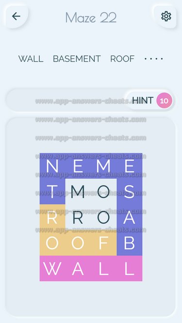 Word Maze Level 22 Answer, Cheat and Solution is online and available for this superb new word game created by Second Gear Games and compatible with Android, iPhone & iPad devices. You have to search all words with sliding over your screen. It’s a lovely game but sometimes you get stuck, that’s why we offer you help to solve all levels. Good luck and have fun. Thanks for your visit.