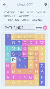 Word Maze Level 222 Answer, Cheat and Solution is online and available for this superb new word game created by Second Gear Games and compatible with Android, iPhone & iPad devices. You have to search all words with sliding over your screen. It’s a lovely game but sometimes you get stuck, that’s why we offer you help to solve all levels. Good luck and have fun. Thanks for your visit.
