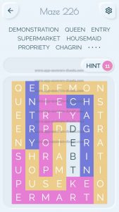 Word Maze Level 226 Answer, Cheat and Solution is online and available for this superb new word game created by Second Gear Games and compatible with Android, iPhone & iPad devices. You have to search all words with sliding over your screen. It’s a lovely game but sometimes you get stuck, that’s why we offer you help to solve all levels. Good luck and have fun. Thanks for your visit.