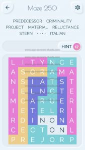 Word Maze Level 250 Answer, Cheat and Solution is online and available for this superb new word game created by Second Gear Games and compatible with Android, iPhone & iPad devices. You have to search all words with sliding over your screen. It’s a lovely game but sometimes you get stuck, that’s why we offer you help to solve all levels. Good luck and have fun. Thanks for your visit.