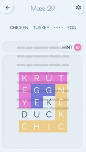 Word Maze Level 29 Answer, Cheat and Solution is online and available for this superb new word game created by Second Gear Games and compatible with Android, iPhone & iPad devices. You have to search all words with sliding over your screen. It’s a lovely game but sometimes you get stuck, that’s why we offer you help to solve all levels. Good luck and have fun. Thanks for your visit.