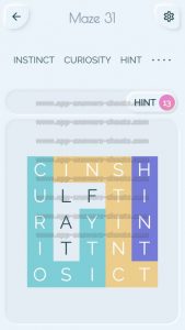 Word Maze Level 31 Answer, Cheat and Solution is online and available for this superb new word game created by Second Gear Games and compatible with Android, iPhone & iPad devices. You have to search all words with sliding over your screen. It’s a lovely game but sometimes you get stuck, that’s why we offer you help to solve all levels. Good luck and have fun. Thanks for your visit.
