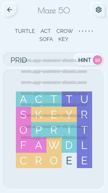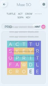 Word Maze Level 50 Answer, Cheat and Solution is online and available for this superb new word game created by Second Gear Games and compatible with Android, iPhone & iPad devices. You have to search all words with sliding over your screen. It’s a lovely game but sometimes you get stuck, that’s why we offer you help to solve all levels. Good luck and have fun. Thanks for your visit.