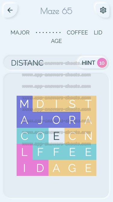 Word Maze Level 65 Answer, Cheat and Solution is online and available for this superb new word game created by Second Gear Games and compatible with Android, iPhone & iPad devices. You have to search all words with sliding over your screen. It’s a lovely game but sometimes you get stuck, that’s why we offer you help to solve all levels. Good luck and have fun. Thanks for your visit.