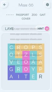 Word Maze Level 66 Answer, Cheat and Solution is online and available for this superb new word game created by Second Gear Games and compatible with Android, iPhone & iPad devices. You have to search all words with sliding over your screen. It’s a lovely game but sometimes you get stuck, that’s why we offer you help to solve all levels. Good luck and have fun. Thanks for your visit.