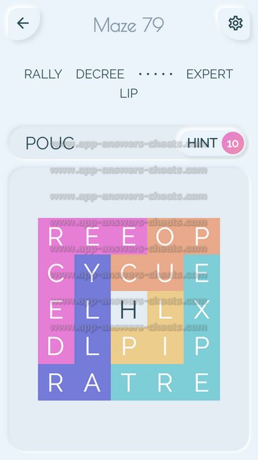 Word Maze Level 79 Answer, Cheat and Solution is online and available for this superb new word game created by Second Gear Games and compatible with Android, iPhone & iPad devices. You have to search all words with sliding over your screen. It’s a lovely game but sometimes you get stuck, that’s why we offer you help to solve all levels. Good luck and have fun. Thanks for your visit.