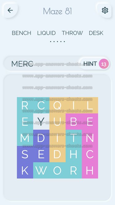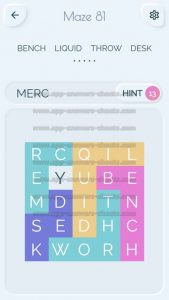 Word Maze Level 81 Answer, Cheat and Solution is online and available for this superb new word game created by Second Gear Games and compatible with Android, iPhone & iPad devices. You have to search all words with sliding over your screen. It’s a lovely game but sometimes you get stuck, that’s why we offer you help to solve all levels. Good luck and have fun. Thanks for your visit.