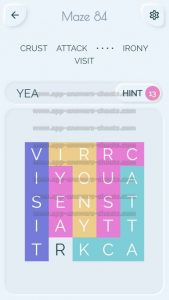 Word Maze Level 84 Answer, Cheat and Solution is online and available for this superb new word game created by Second Gear Games and compatible with Android, iPhone & iPad devices. You have to search all words with sliding over your screen. It’s a lovely game but sometimes you get stuck, that’s why we offer you help to solve all levels. Good luck and have fun. Thanks for your visit.