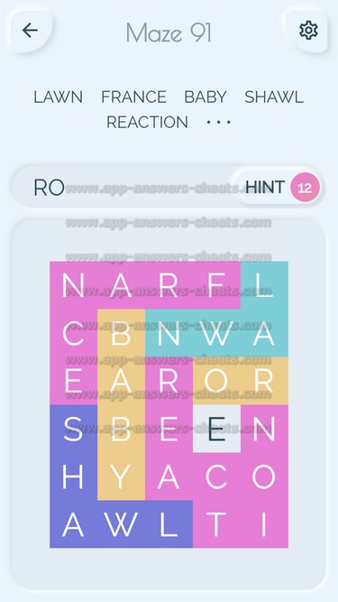 Word Maze Level 91 Answer, Cheat and Solution is online and available for this superb new word game created by Second Gear Games and compatible with Android, iPhone & iPad devices. You have to search all words with sliding over your screen. It’s a lovely game but sometimes you get stuck, that’s why we offer you help to solve all levels. Good luck and have fun. Thanks for your visit.