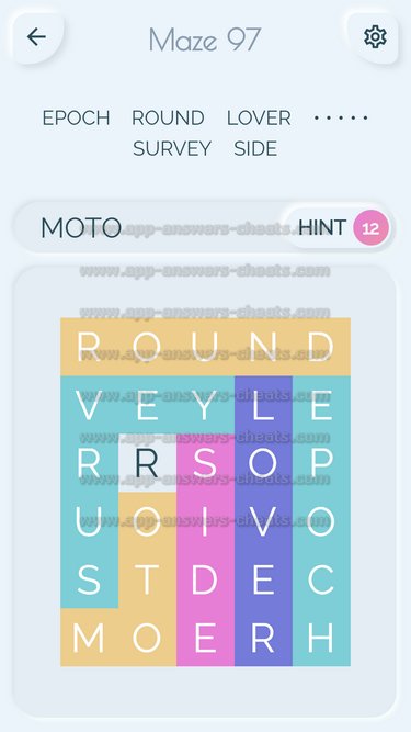 Word Maze Level 97 Answer, Cheat and Solution is online and available for this superb new word game created by Second Gear Games and compatible with Android, iPhone & iPad devices. You have to search all words with sliding over your screen. It’s a lovely game but sometimes you get stuck, that’s why we offer you help to solve all levels. Good luck and have fun. Thanks for your visit.